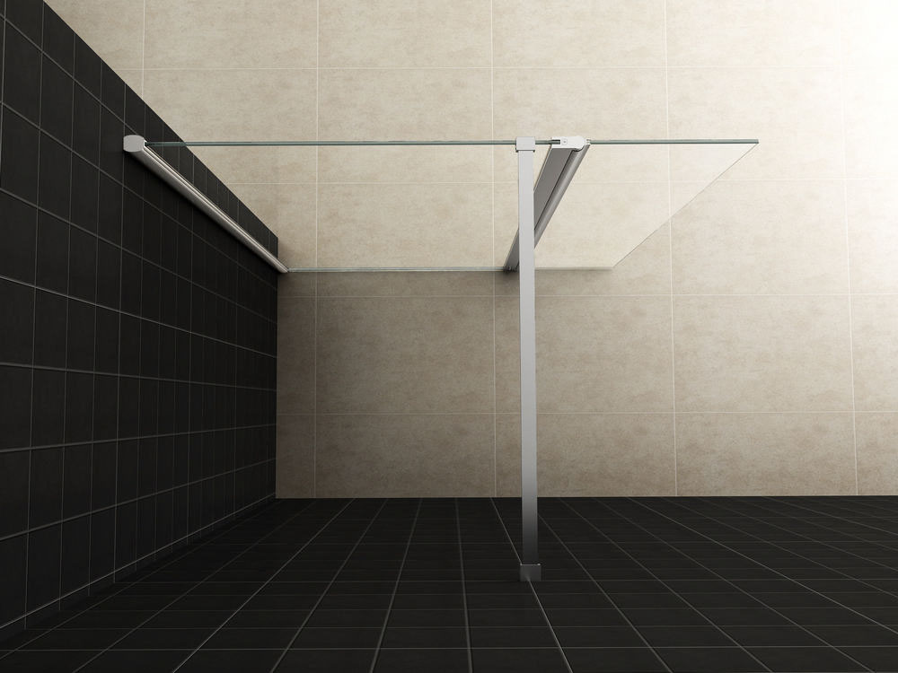 Wanneer deze zijwand in het verlengde van een andere douchewand staat kan deze naar beide kanten 90 graden draaien. De Chroom-look zijwand is tevens is zowel links als rechts te monteren.